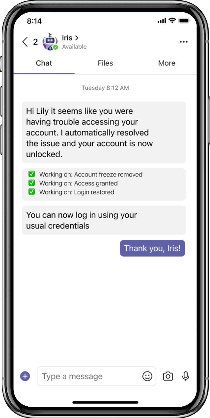 From deployment, Iris exceeded expectations by resolving IT issues proactively through its conversational interface before reaching support staff. “The number of times Moveworks resolves issues before they become tickets is incredible,” remarked Hobbs. Moveworks’ enterprise-grade architecture enables Iris to integrate securely with critical systems, querying knowledge bases and automating workflows.
