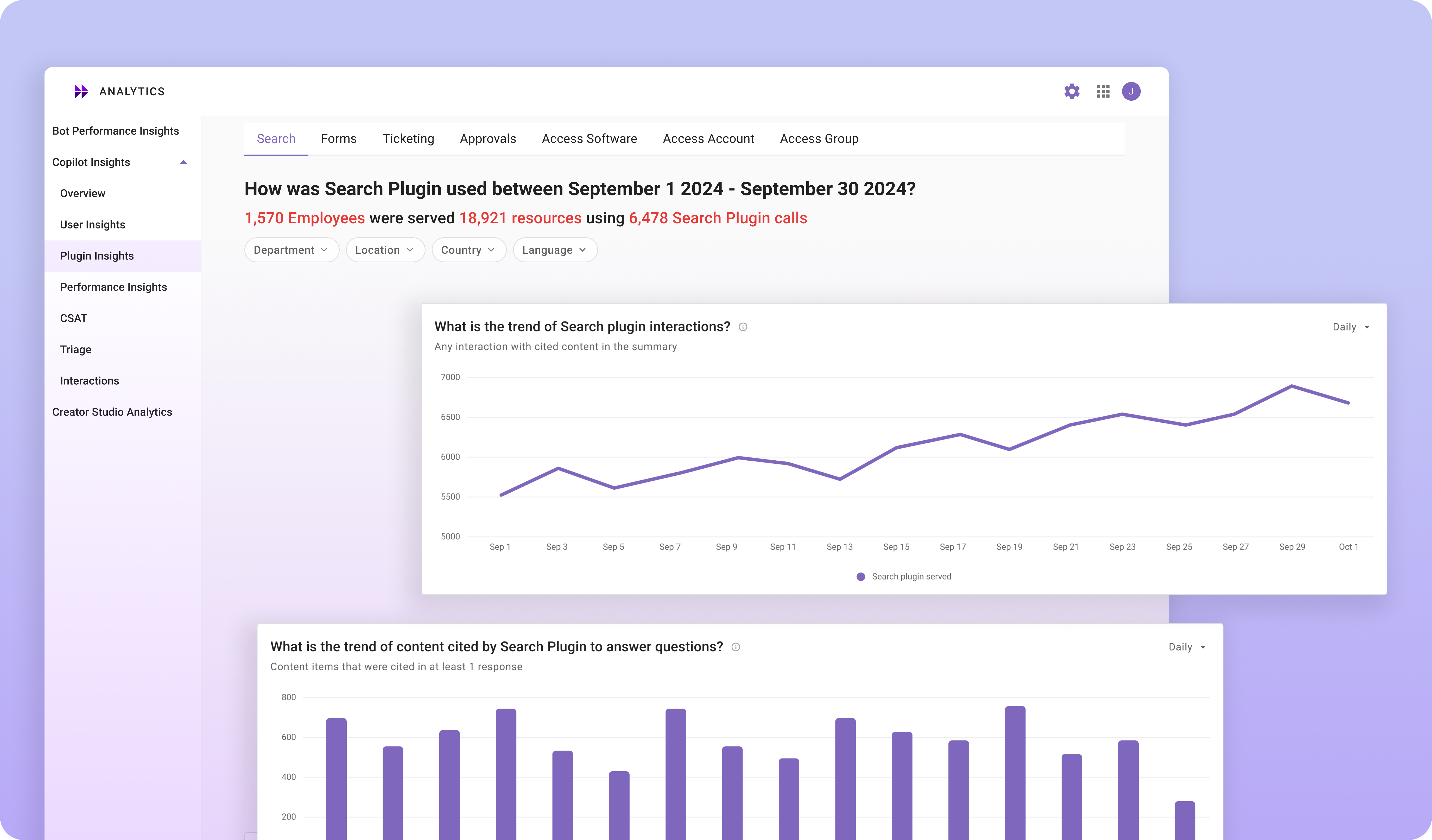 Track the performance of knowledge articles after publication with insights that provide visibility into how Moveworks is leveraging the content to resolve issues