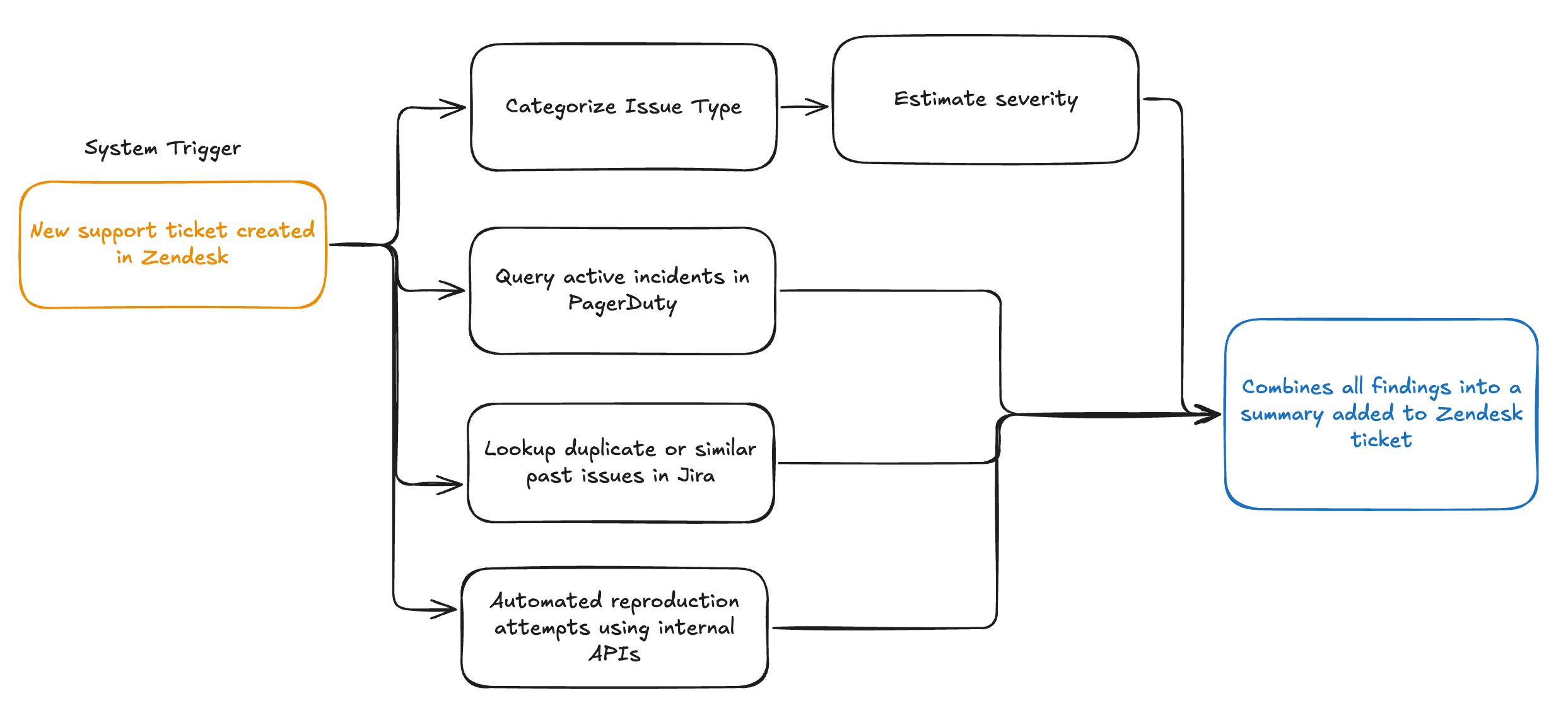 Critical issues often sit idle while support teams work to understand whether it’s urgent and what exactly is broken. Ambient agents can instantly triage new support tickets which involves classifying the issue, checking system status, surfacing related reports, and even attempting to reproduce the problem using internal tools. This allows customer support teams to jump straight into resolution with the full context.