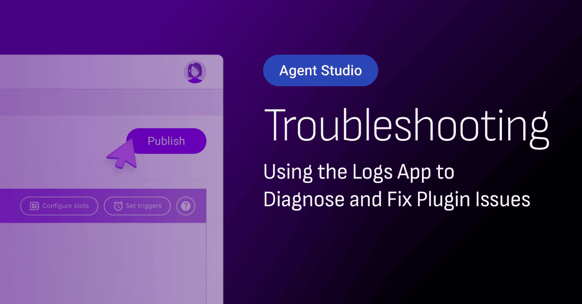 Learn how to debug and resolve common Agent Studio plugin issues with the Logs App, a centralized dashboard for viewing logs of plugin actions and errors. Conduct a log analysis and identify key log types and their use in diagnosing plugin issues.