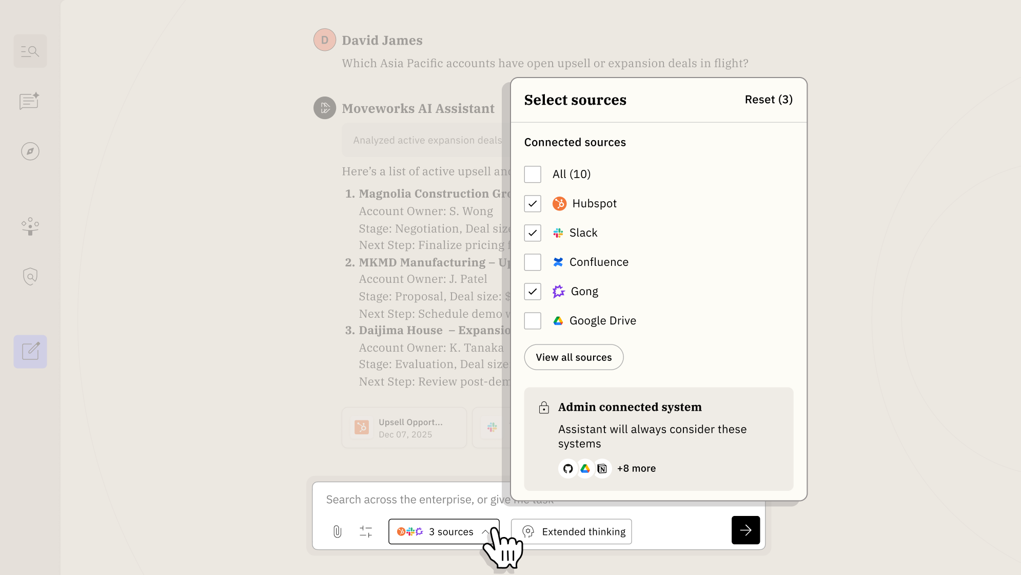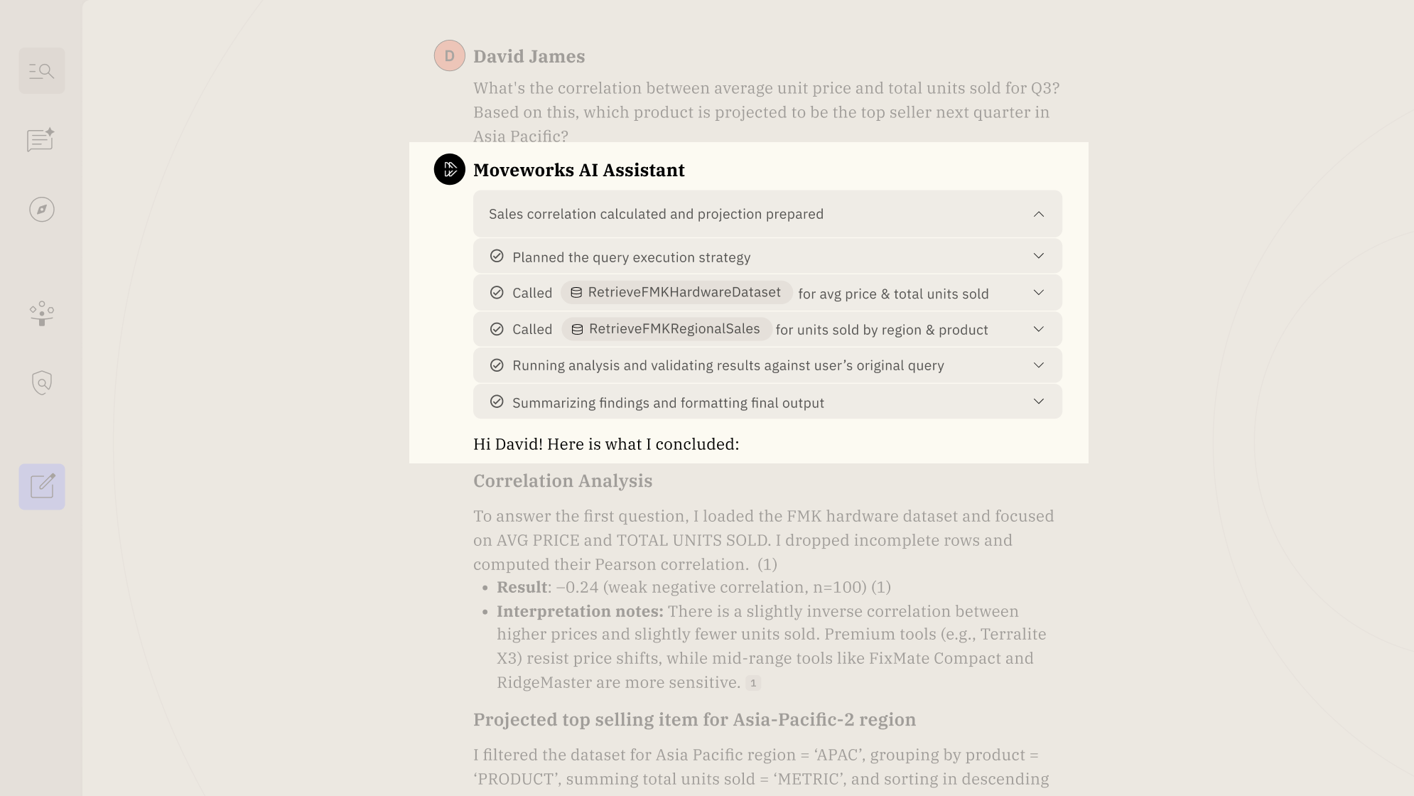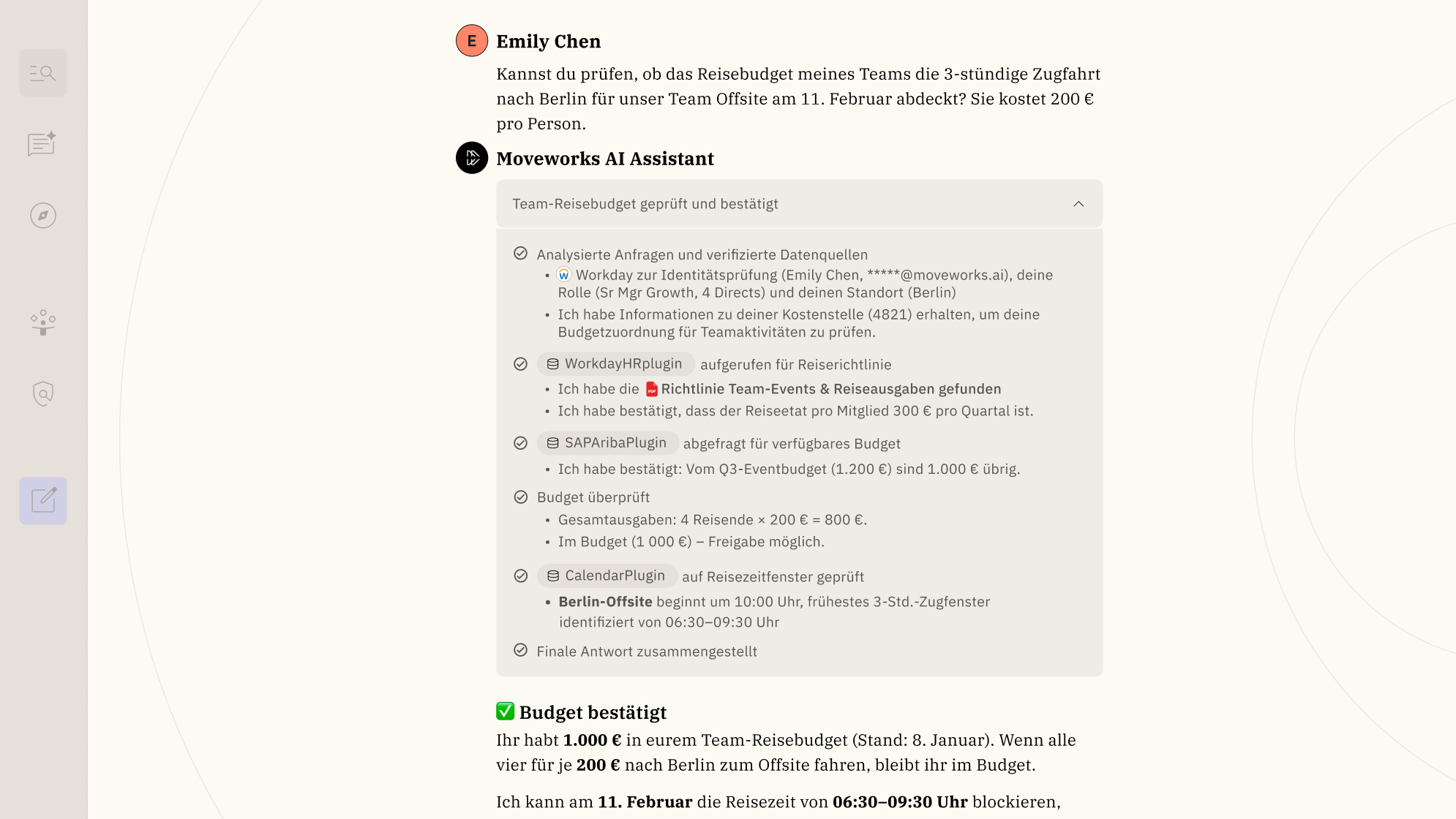 Moveworks AI Assistant personalizes responses with business context and individual permissions, routing requests to the right applications and learning continuously from each interaction. It’s powered by a sophisticated Reasoning Engine that understands intent, nuance, and your organization’s unique workflows to accelerate execution for your entire workforce.