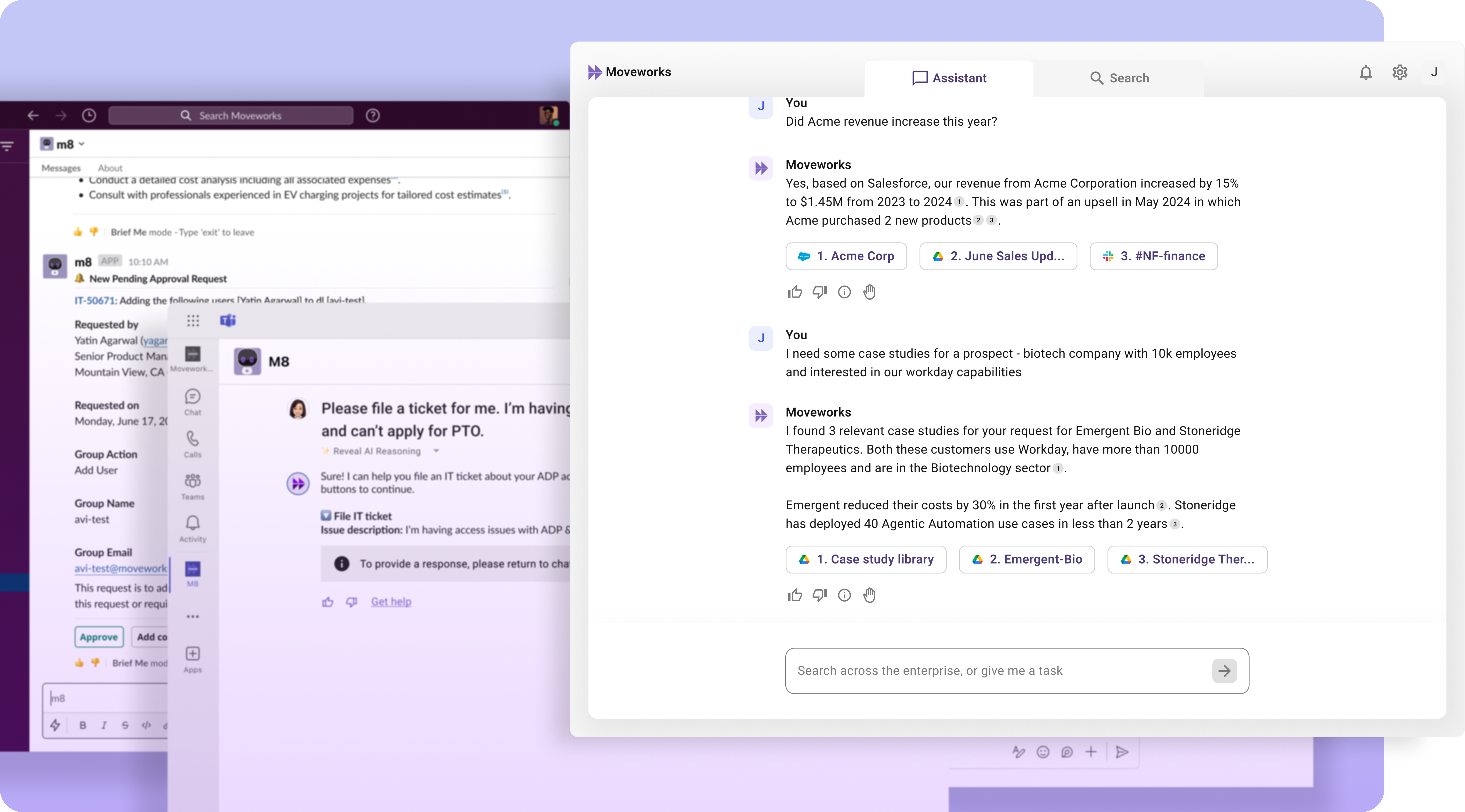 Eliminate tool switching. Find the right answers and automate tasks across enterprise applications, all from one web surface.