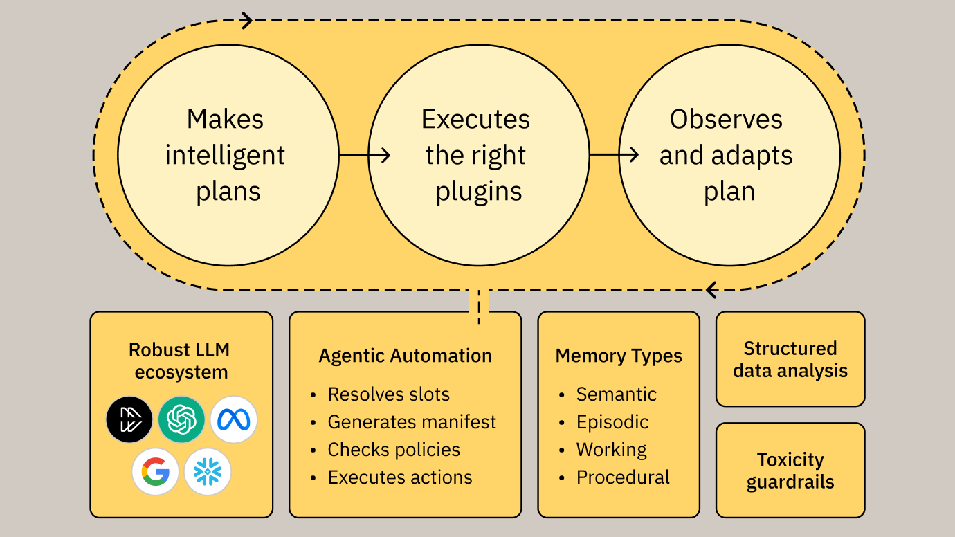 From interpreting queries to activating plugins and generating artifacts, our agentic architecture turns employee input into tangible business outcomes.