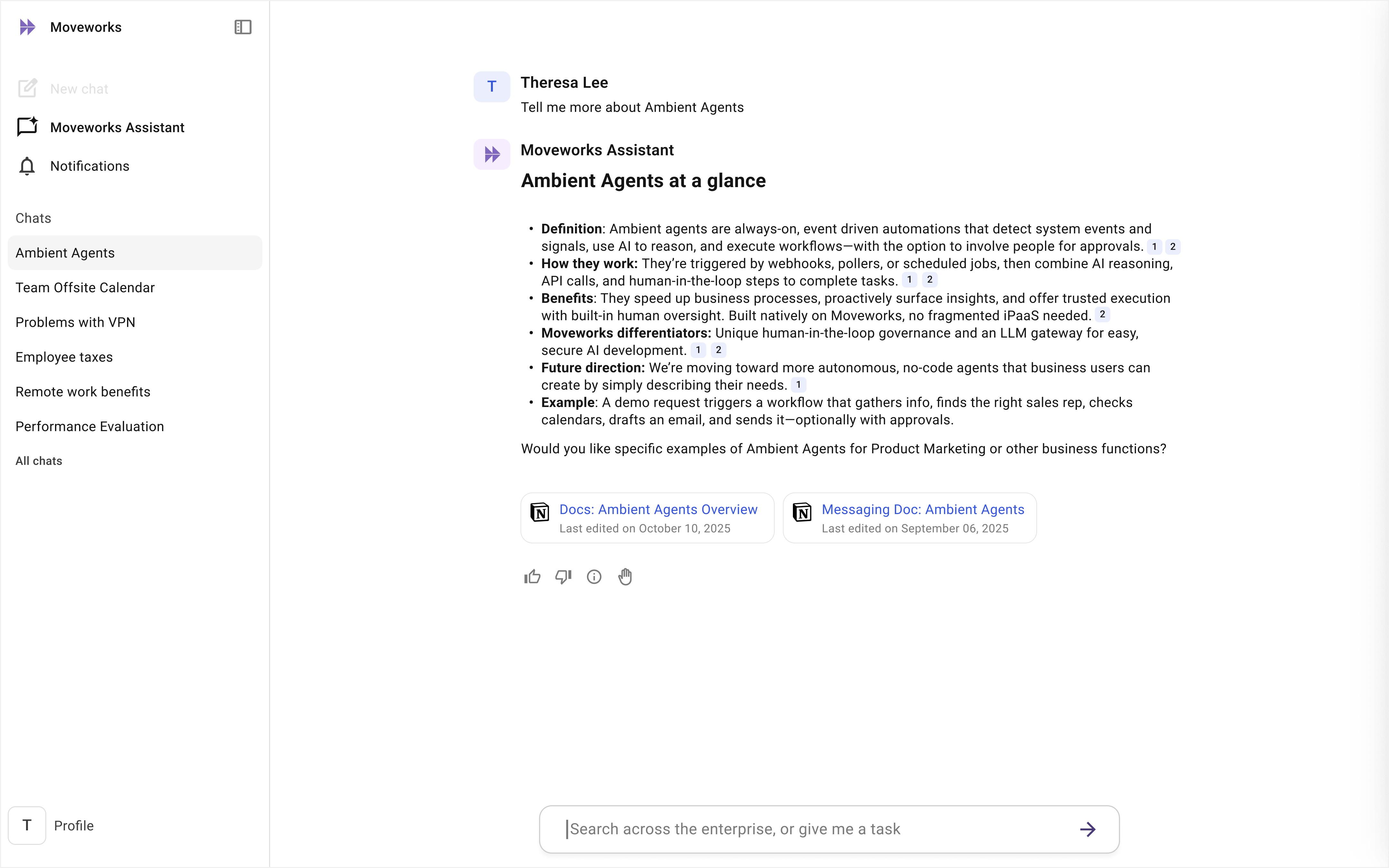 The Assistant on web will be available to all customers starting the week of November 3. We can’t wait to get this into the hands of every employee. The Moveworks AI Assistant is now everywhere you work — more powerful and more essential than ever.