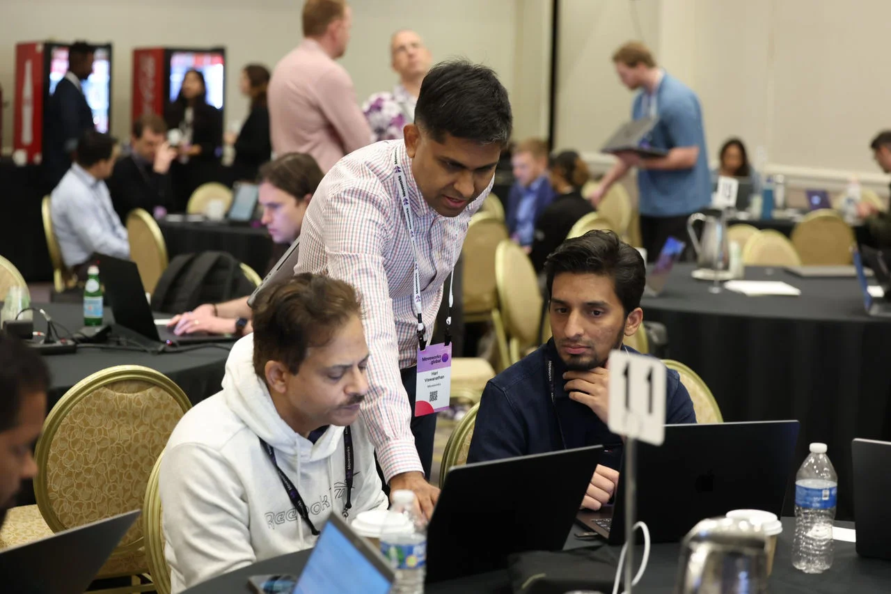 The evening before .global, Moveworks hosted an AI Agent Hackathon together with Nymbl to give participants hands-on experience building AI agents. At the event, Moveworks unveiled AI Agent Marketplace and the innovative Agent Studio, allowing technical teams to streamline operations and drive business efficiency.