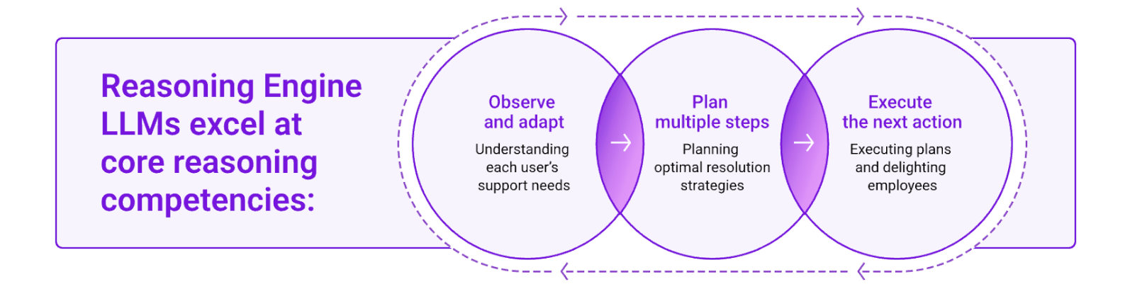 Our Reasoning Engine leverages this agentic AI framework to transform how enterprises handle everyday employee challenges. Here's how it works: