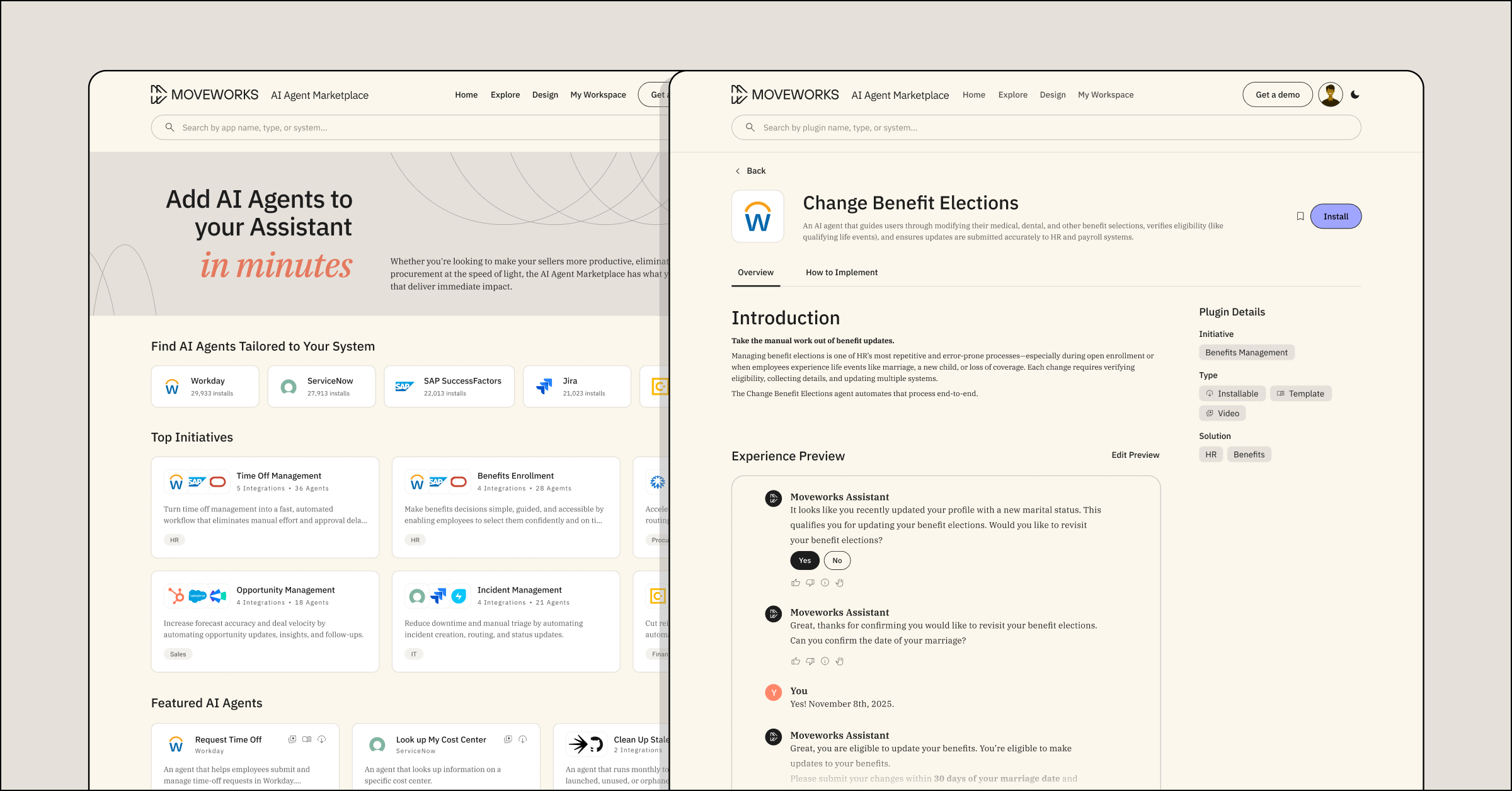 Moveworks Assistant completes tasks from end-to-end in seconds across your tech stack using hundreds of out-of-the-box integrations and plugins.